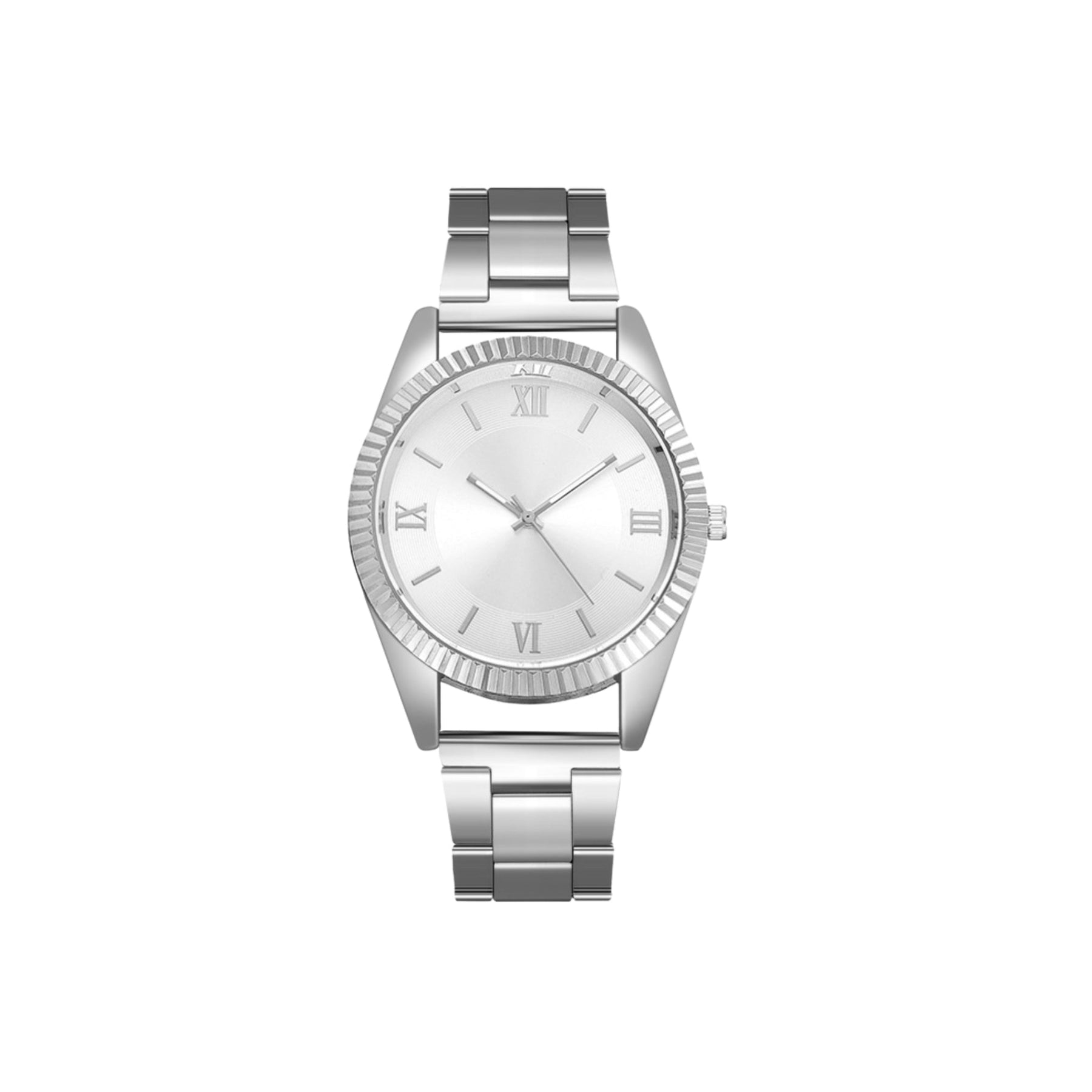 UNLOCK YOUR DRIP. This watch keeps it classic with a black dial, silver Roman numerals, and a polished metal strap. Simple, sleek, and versatile, it’s built to work for everyday wear or formal fits.